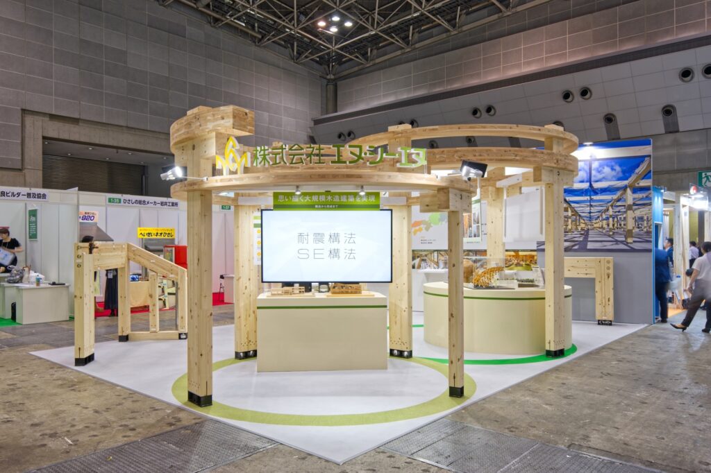 エヌ・シー・エヌのブースでは、非住宅木造建築の最新事例や「SE構法」の進化、グループ全体で取り組むDXの推進など、大規模木造の“今”を一挙にご紹介します。