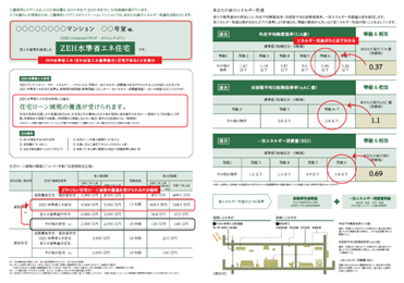 ・建築物の省エネルギー性能の第三者認定である「BELS」取得を表示 ・ZEH水準または省エネ基準であることを表示 ・「住宅ローン減税」の優遇(借入限度額・最大控除額)を表示 ・エネルギー性能(UA値、ηAC値、BEI)を一目で表示 |