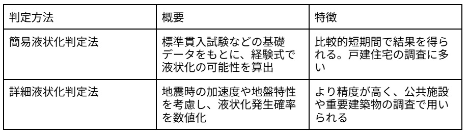 液状化のおそれがあると判断された場合、現地で地盤データを取得して詳しく分析します。ボーリング調査や標準貫入試験を行い、地層の強度や地下水位を確認します。