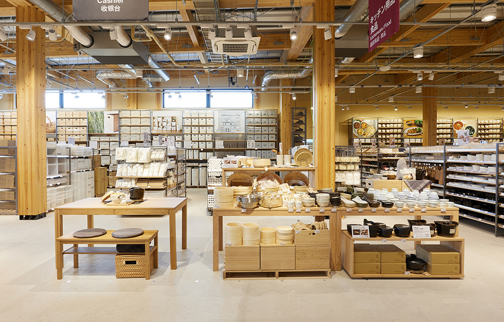 無印良品が扱うほぼすべての生活基盤商品が陳列できるという店舗「無印良品 日田」が、大分県日田市の商業エリアに完成した。近隣にショッピングモールがオープンし、今後の賑わいが期待されている。