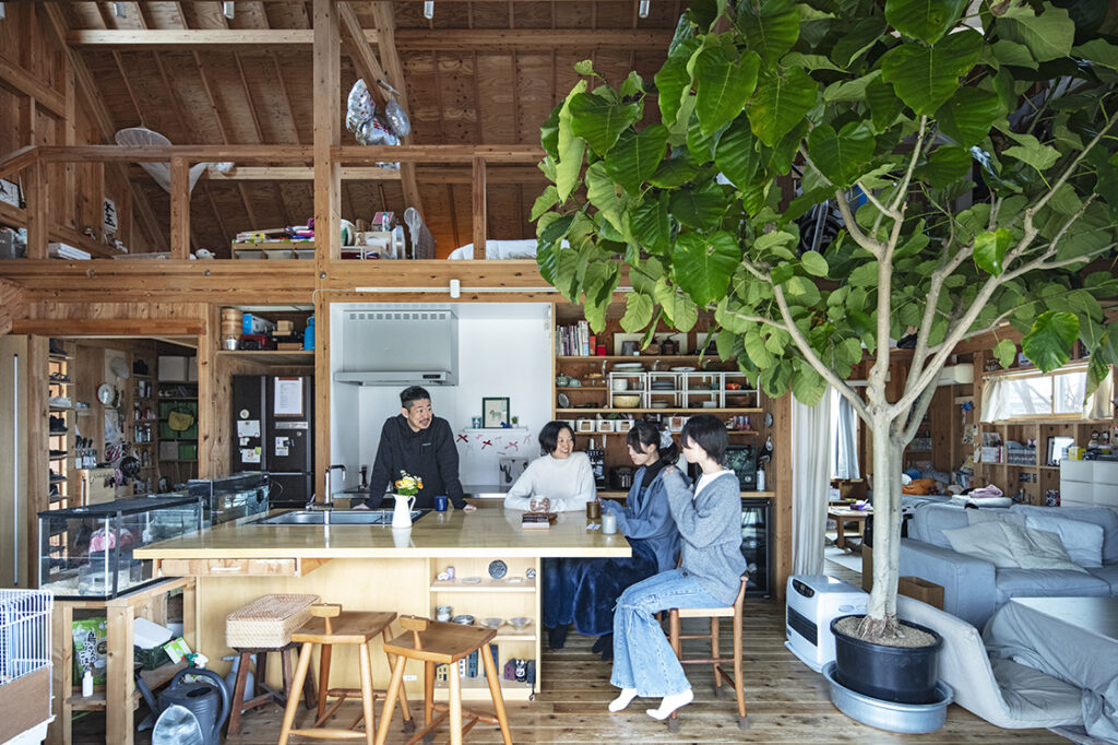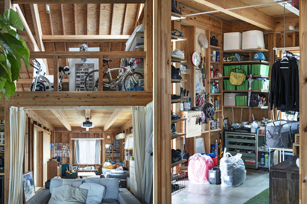 入居から10年、家族の成長に合わせて1階にあった寝室はLDKの一部となり、2階は家族4人の寝室となった。家族の日常や思い出が伝わってくる数々の物も”あらわし”となって、Tさん一家らしいにぎやかさを生んでいる。ミニマルな空間とはまた別の魅力がある、作りながら暮らす楽しさが息づく唯一無二の住まいとなっている。