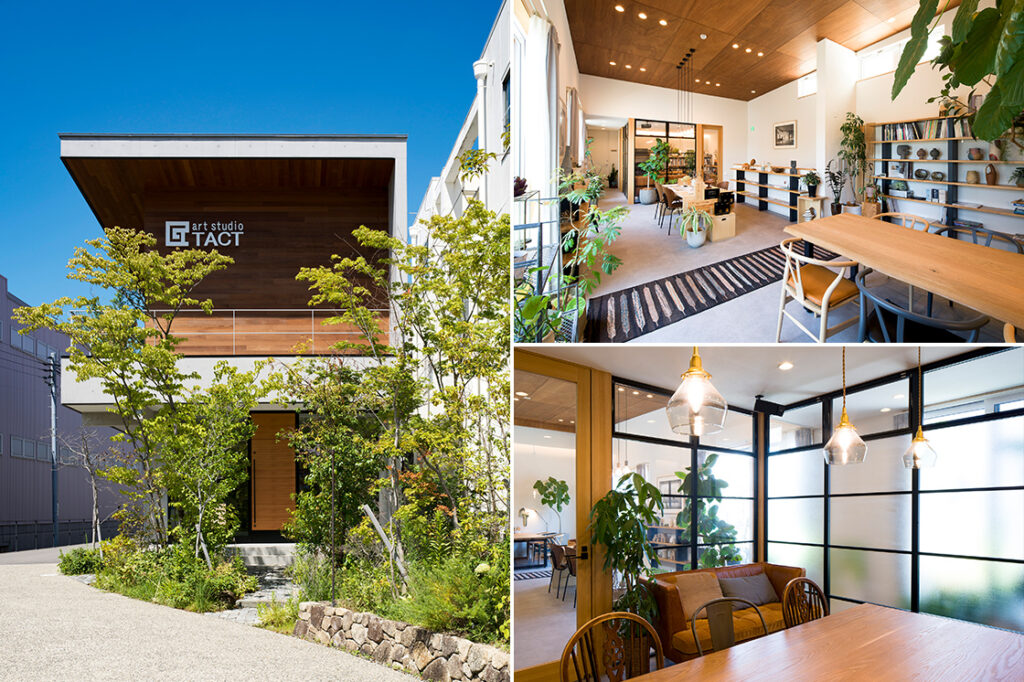 和歌山市に竣工した有限会社アート工房 匠人の新社屋は、ユニテクノス建築設計事務所を併設し、設計から施工までを手がけるマイクロゼネコンの拠点だ。代表取締役の北村さんは、住まいは特別な場所ではなく日常のなかに自然に存在するべきものだと考えており、今回の新社屋建設によってその思いがカフェ、ショールーム、事務所併設というかたちで実現した。