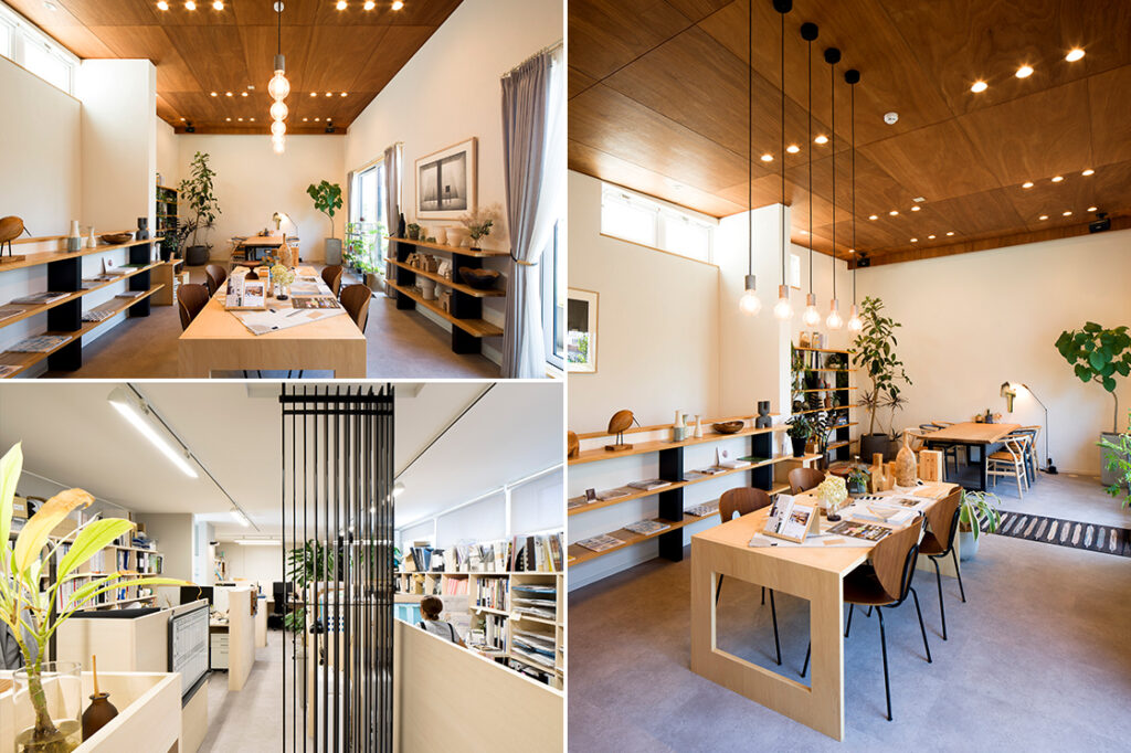 カフェ、ショールーム、設計事務所がゆるやかにつながるこの新社屋は、地域に開かれた場であると同時に、同社の家づくりの姿勢を象徴する拠点となっている。